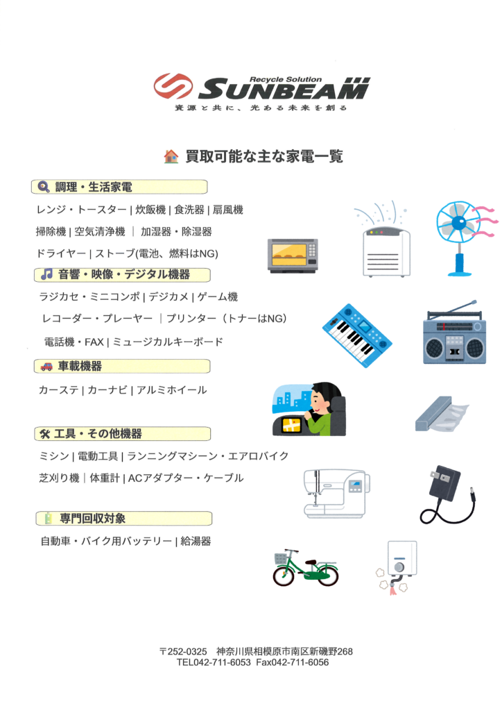 ※家電リサイクル法の対象家電は取り扱い不可ですのでご注意ください。