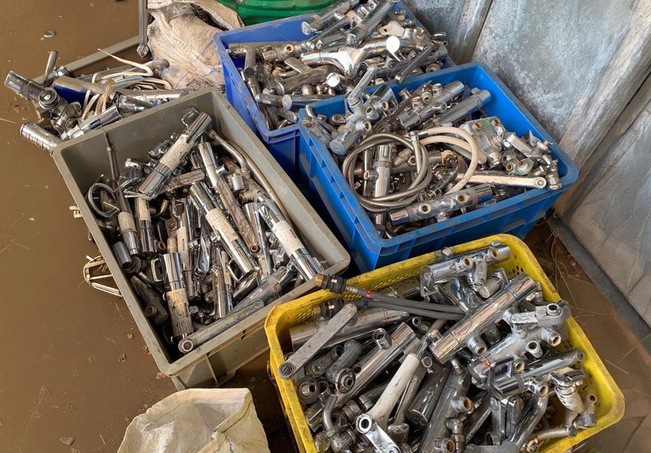 込真鍮とは、水道蛇口・バルブ・継手・建築金物など、真鍮製品が混在した状態のスクラップを指します。
